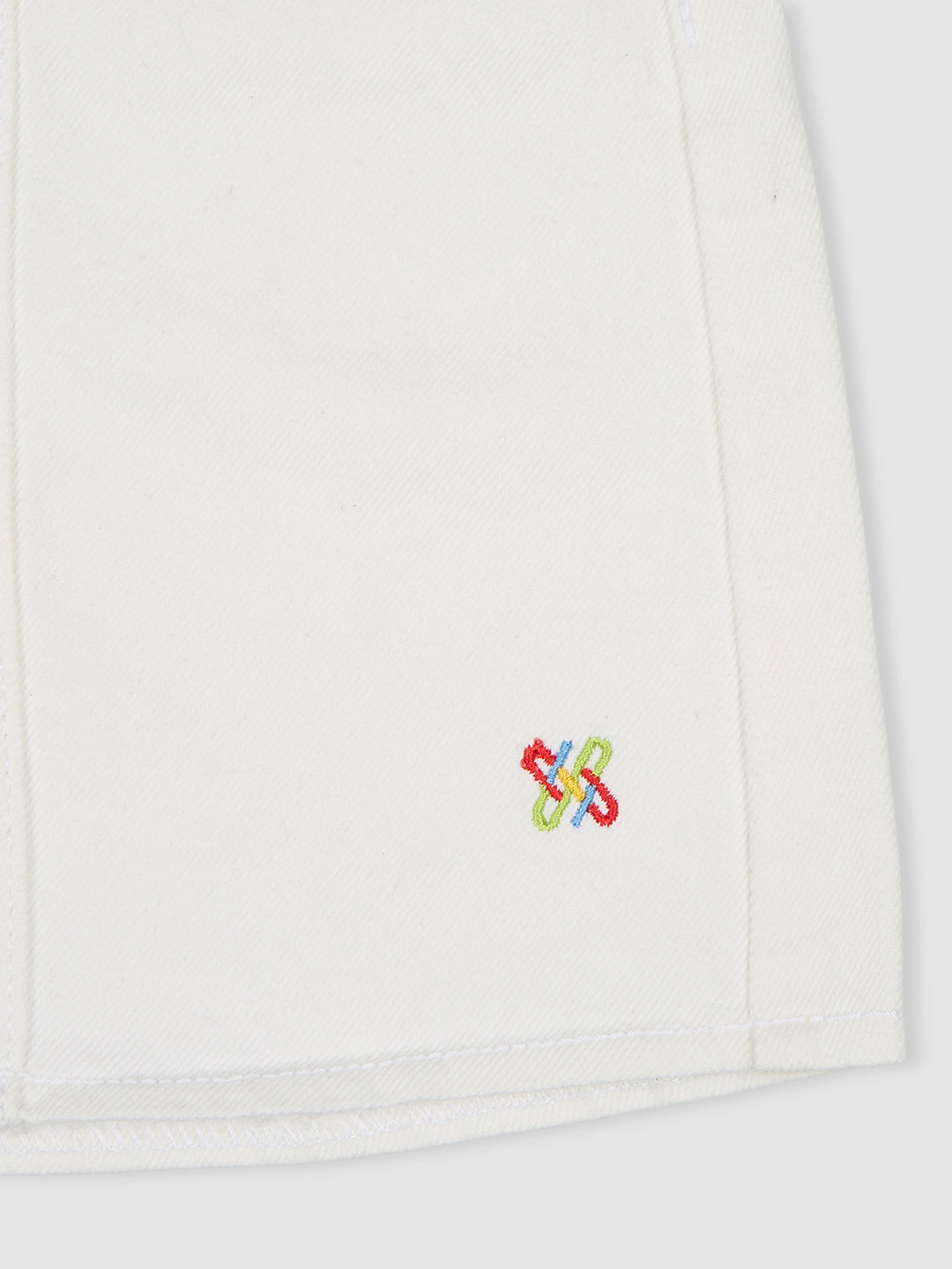 Knit N Knot Girls' Knee-Length Milky White Button Embellished Cotton Denim Skirt